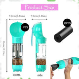 This newly upgraded pet water bottle embodies convenience by holding 300ml (10oz) of fresh water and 100g of pet food. Moreover, it includes a roll of poop bags and a poop scoop, catering to all your pet care needs on the go. The stool bag comes in a randomly distributed color, adding a splash of surprise to your adventure. It's a practical solution for outdoor adventures or travel.